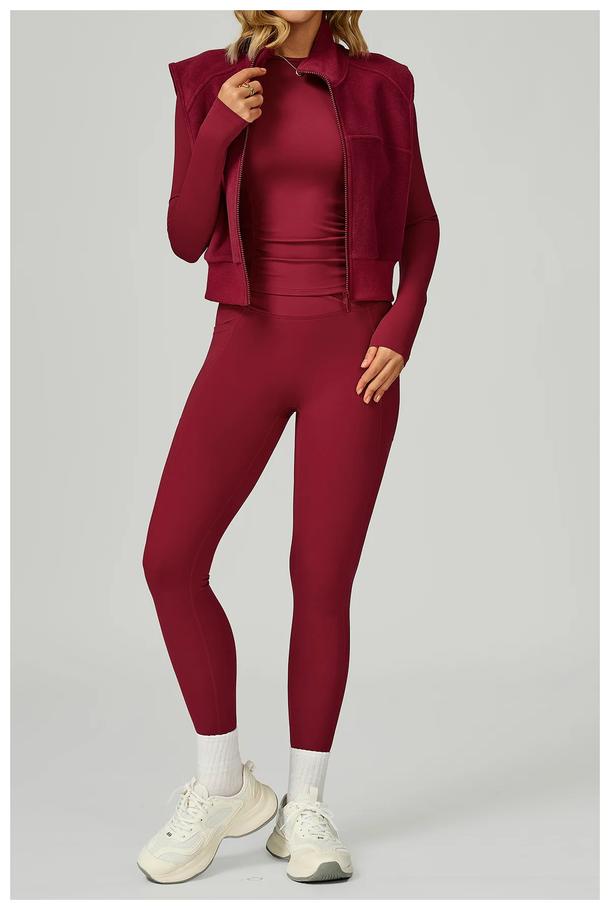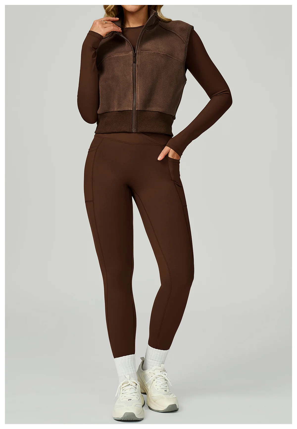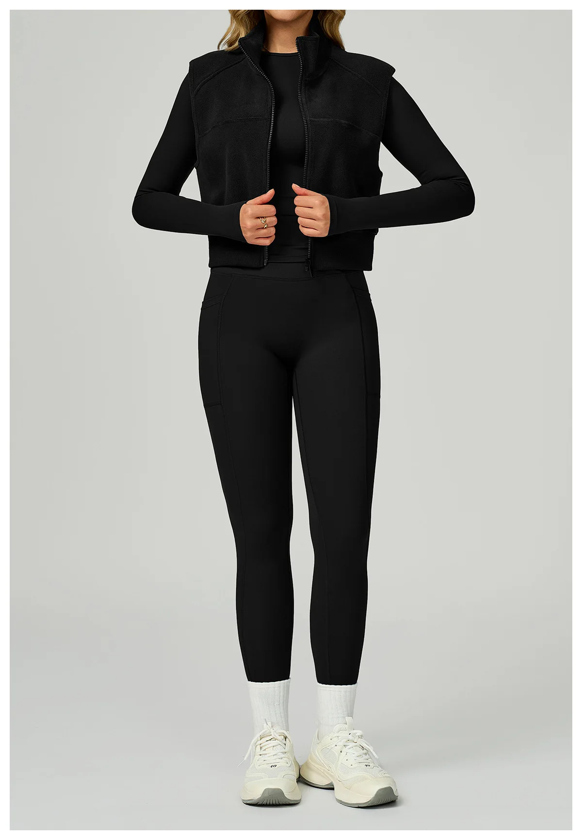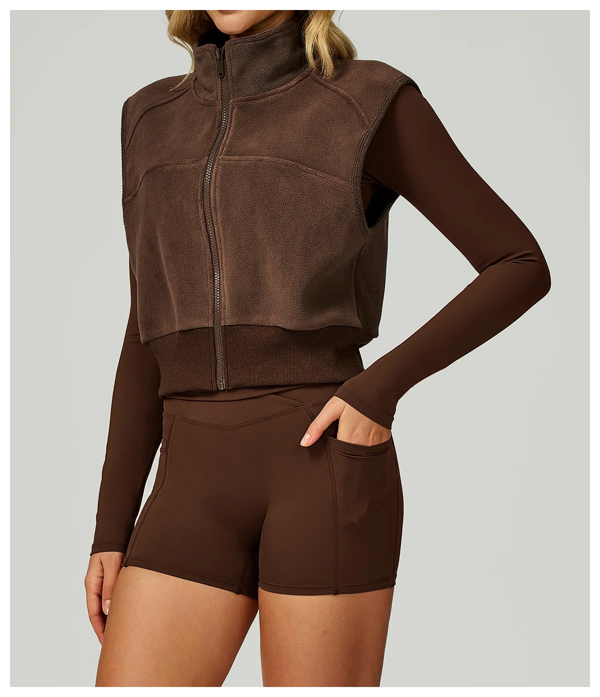 Whether you're running outdoors, warming up for yoga or pilates, or heading to and from the gym, the Cozy Vest offers the perfect balance of mobility and insulation. Its fleece-lined interior provides soft warmth without adding bulk, making it a versatile essential for winter, spring, and autumn workouts.