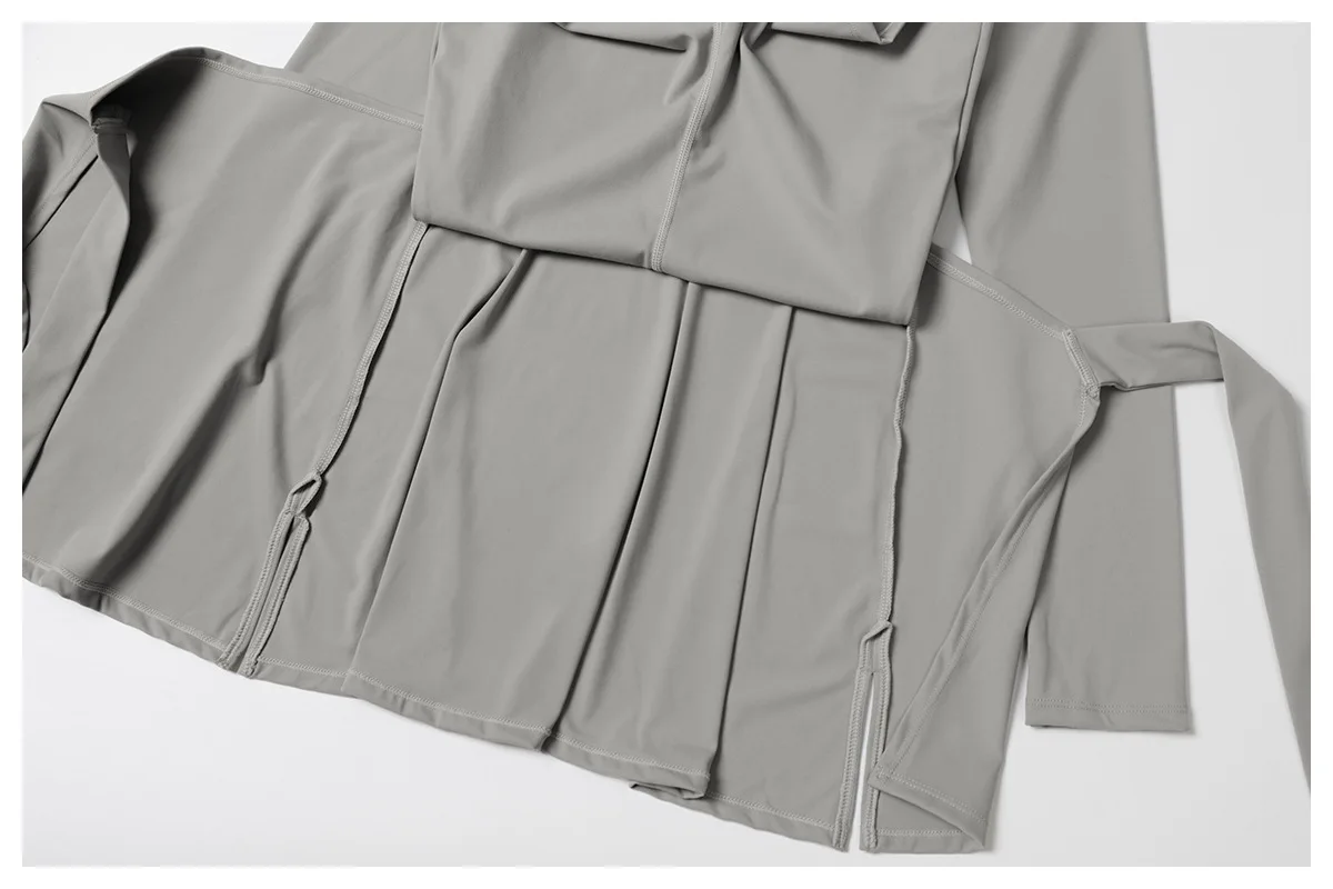 The WaistTie Jumpsuit – Alaia Fitness dress is designed for women who want a sleek, sculpting fit with the freedom to move effortlessly. Made from our high-performance blend of 78% Nylon + 22% Spandex, it offers breathable compression, smooth stretch, and a flattering silhouette perfect for both sport and style.